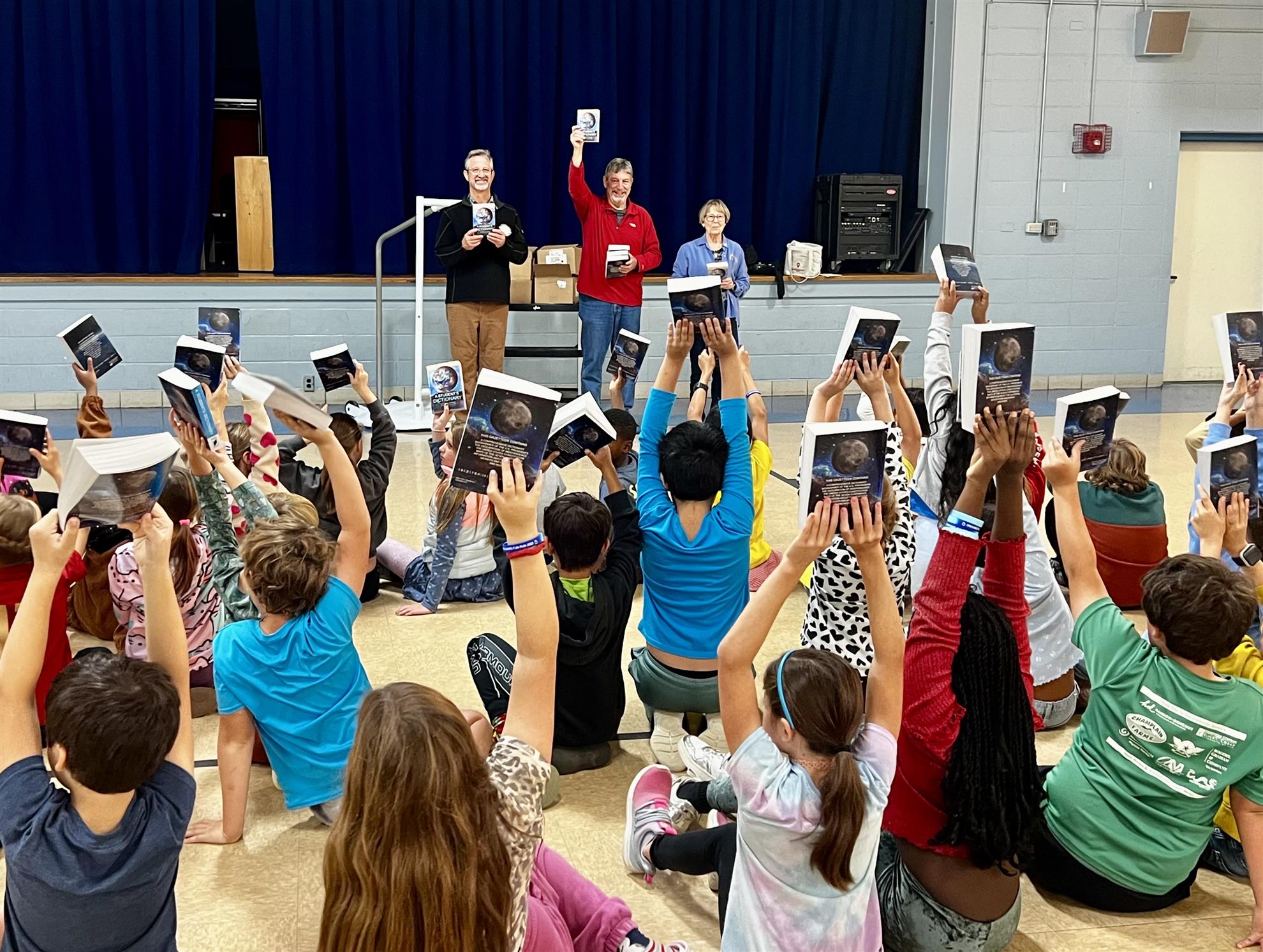 Our club distributes dictionaries to all third grade students in South Burlington each year. This year we were able to commemorate Noah Webster's birthday on October 16th for this year's distribution. Our member, Charlie Lawrence (left), organized the event and is shown here with Sandy Walsh (right) and Jay Pasackow at Orchard School.
