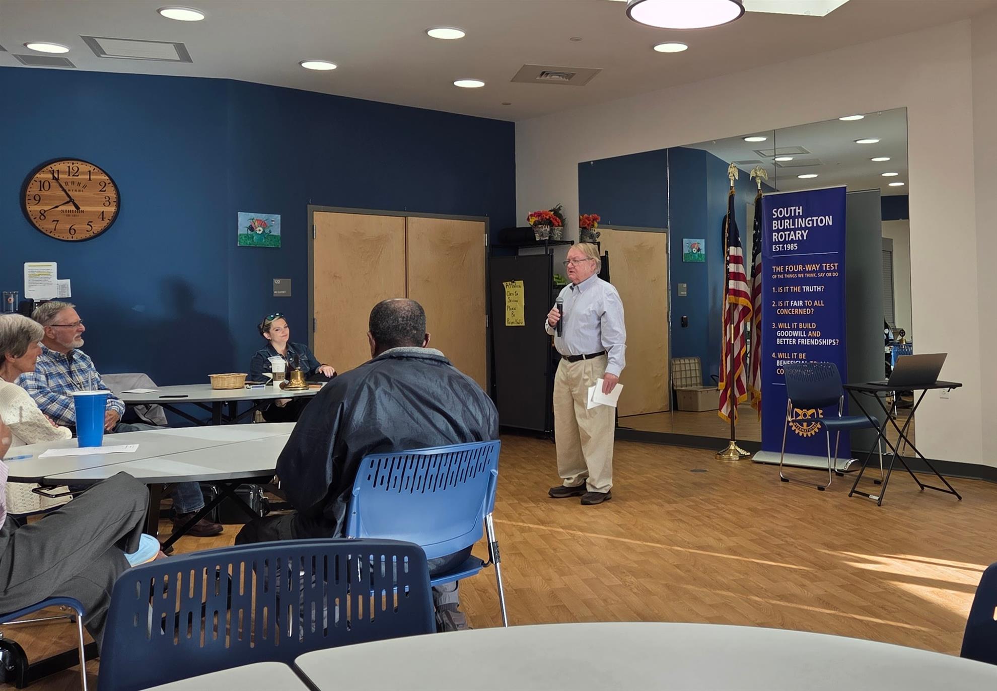 John Simson speaks to RotaryOur very own John Simson spoke at our rotary meeting about the history and work being done at the South Burlington cemeteries . |