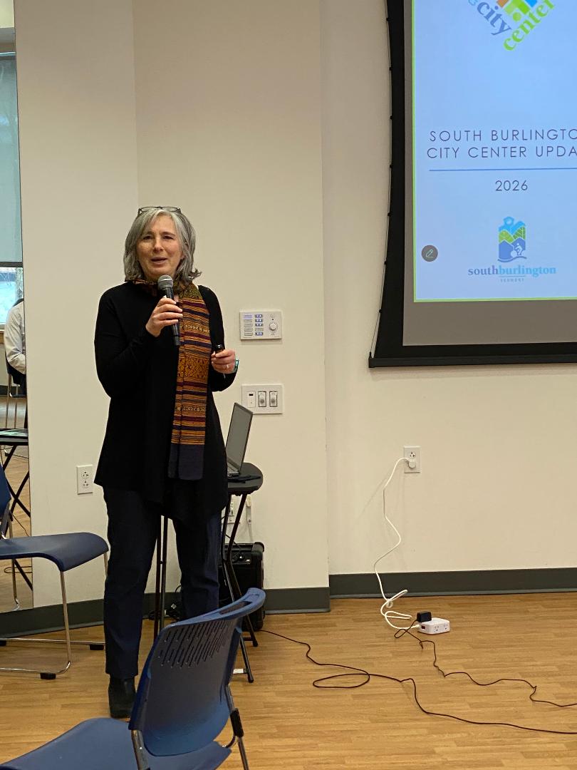 Ilona Blachard, Community Development Director for the City of South Burlington speaks to the club.